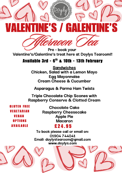 Book your VALENTINE'S AFTERNOON TEA online today (menu below)